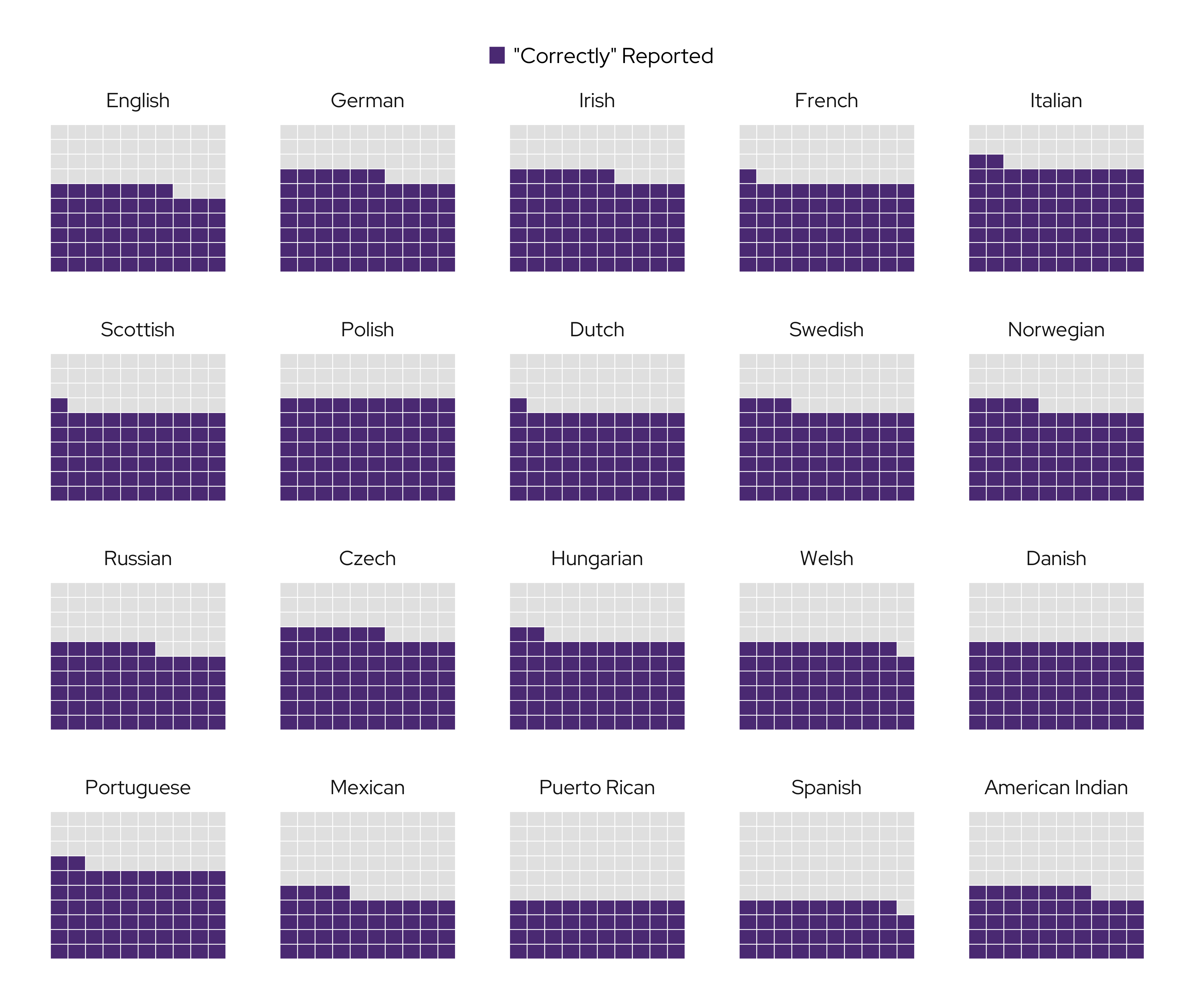 Even though it was a breakthrough for the 1980 census to allow more than one ancestry … (Waters’) interviews suggest that such surveys underestimate the mixing of the population. This is because it is often assumed when analyzing these surveys that only those giving a multiple ancestry are the result of ethnic intermixing. However, people frequently make choices and sift through their ancestries before naming an ancestry. Many people who give a multiple ancestry have simplified from an even greater number of possibilities, and many people who give a single ancestry are actually aware of multiple possible ancestries in their backgrounds.